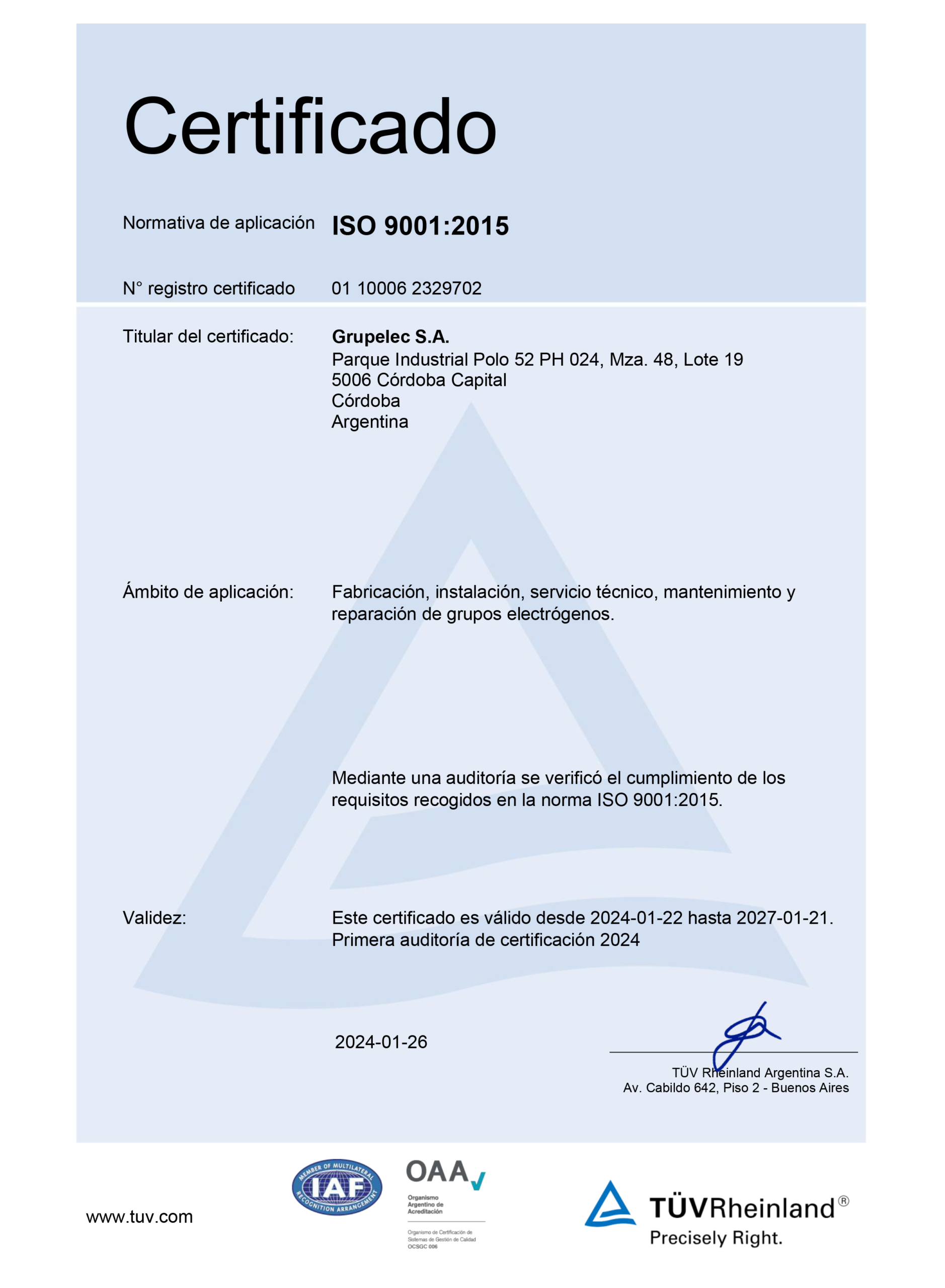 Como resultado final, nos es grato comunicar que en el mes de diciembre de 2023 certificamos nuestro sistema de gestión norma ISO 9001:2015.